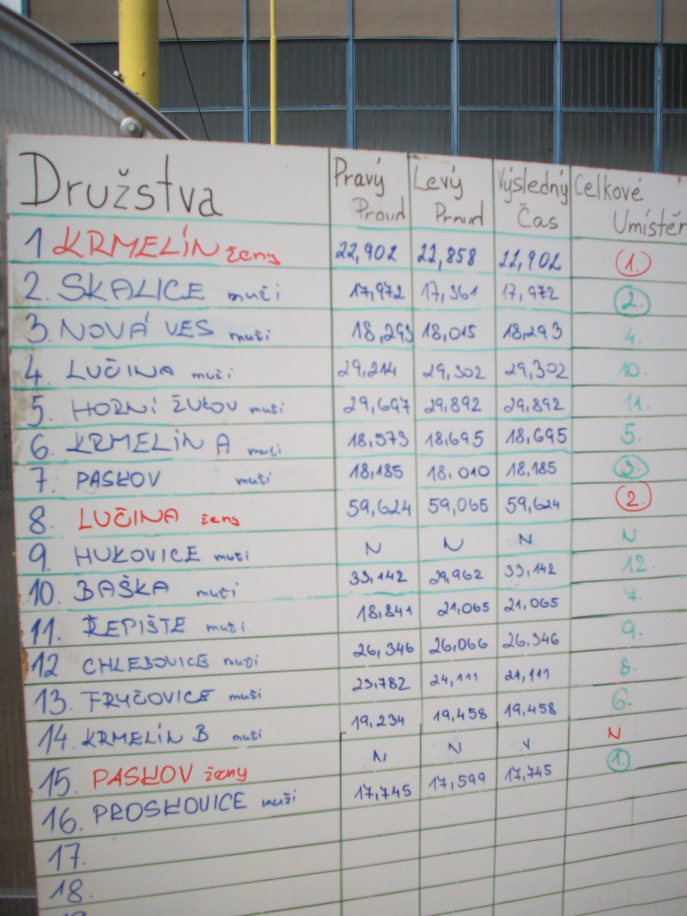 Výsledky pohárové soutěže